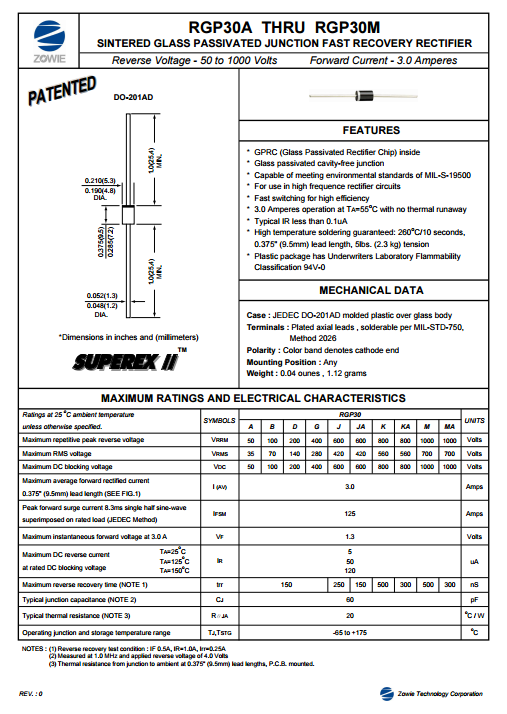 RGP30M Hızlı Diyotun Teknik Özellikleri Nelerdir?