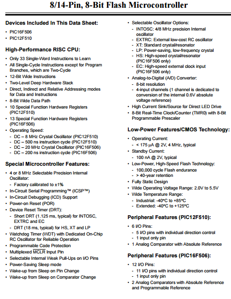 PIC12F510 I/P 8-Bit 8Mhz Mikrodenetleyici DIP8 Entegre (12F510)