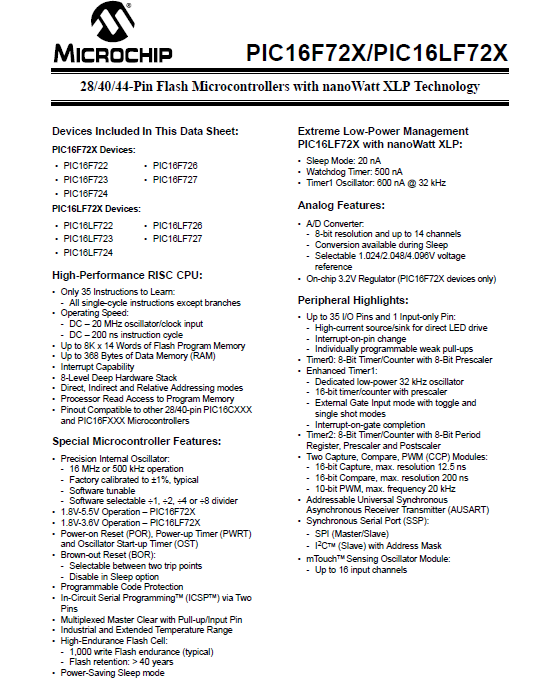 PIC16F722-I/SP Entegre